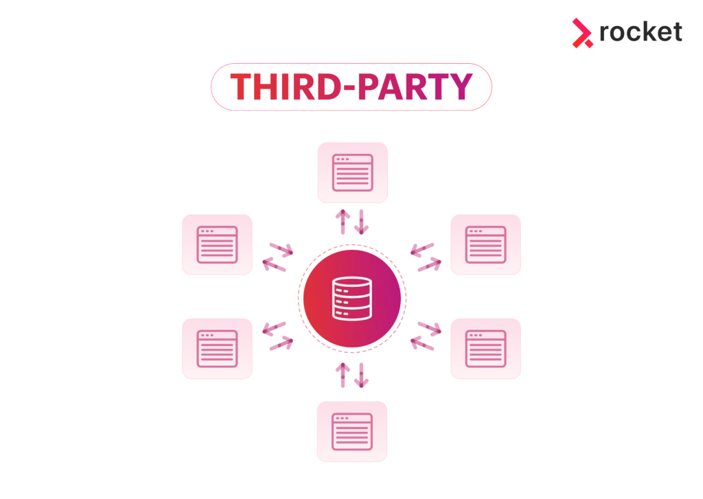 Third-party data: คือข้อมูลที่ถูกเก็บรวบรวมโดยองค์กรภายนอก แล้วนำมาแบ่งขายหรือให้สิทธิ์ใช้งานกับแบรนด์ต่าง ๆ โดย third party คือแหล่งข้อมูลที่มีขนาดใหญ่มาก ครอบคลุมกลุ่มผู้บริโภคหลากหลาย